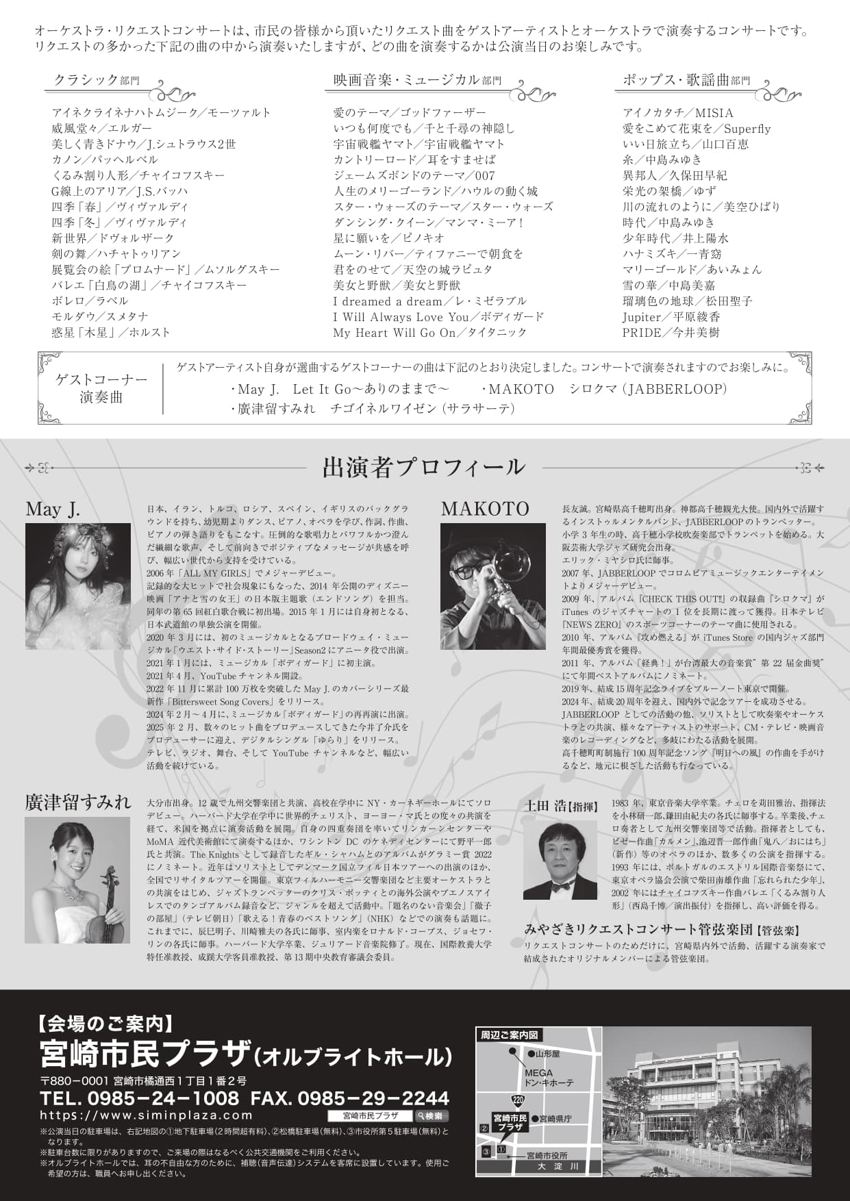 【出演者】May J. / MAKOTO / 廣津留すみれ / みやざきリクエストコンサート管弦楽団