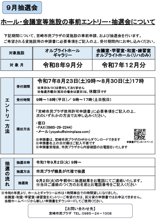 9月の抽選会のお知らせ